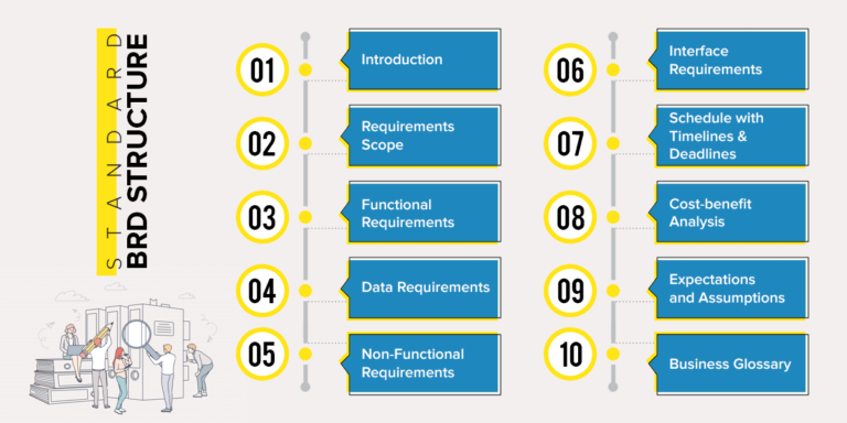 The BRD is designed to take the reader from a high-level understanding of the business processes down to the detailed business requirements. It should capture the following: